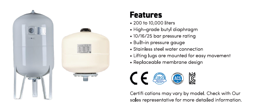Hydro-Plus Hydronic Expansion tanks are designed to absorb theexpanded fluid in closed-loop of residential or commercial hydronic heating and cooling systems to control pressure build up. Hydro-Plus expansion are tanks composed of a tank in sheet steel which incompliance with IAPMO and EN Standard and welded according to ASME & EN procedure by certified welder.