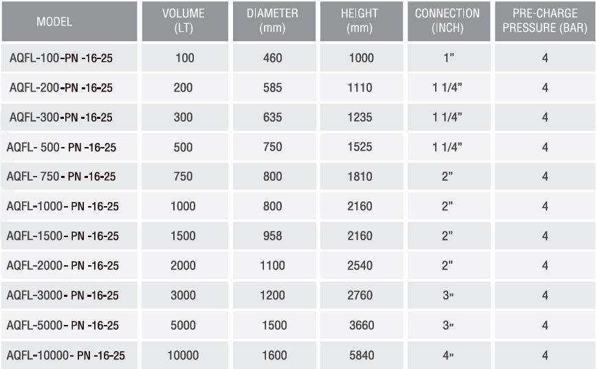 Our AquaFlow series pressure tanks offer a wide range of capacities, from 100L to 10,000L, with pressure ratings of 10, 16, and 25 bar. Designed for superior performance and durability, our tanks meet the highest industry standards, ensuring reliability for various applications.